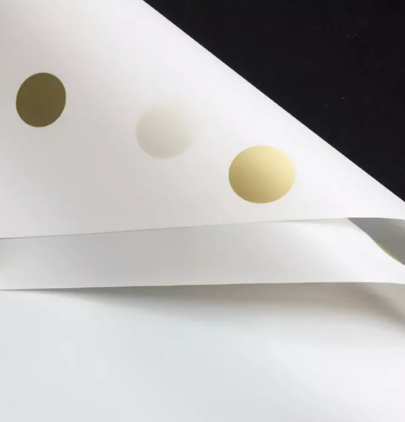 Ambalaj waterproof 60x60cm fond alb buline aurii