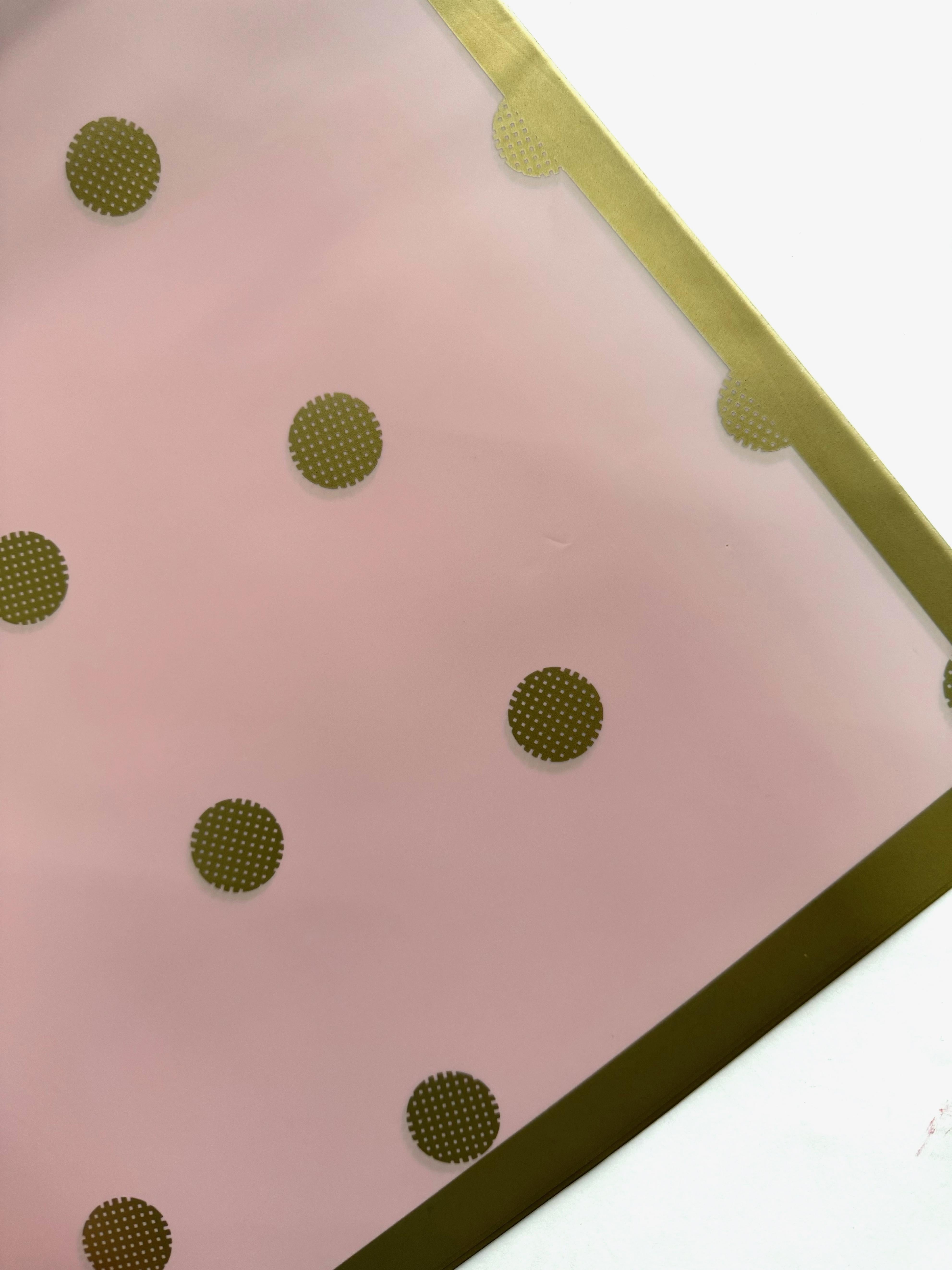 Ambalaj waterproof 60x60cm fond roz buline aurii margine aurie