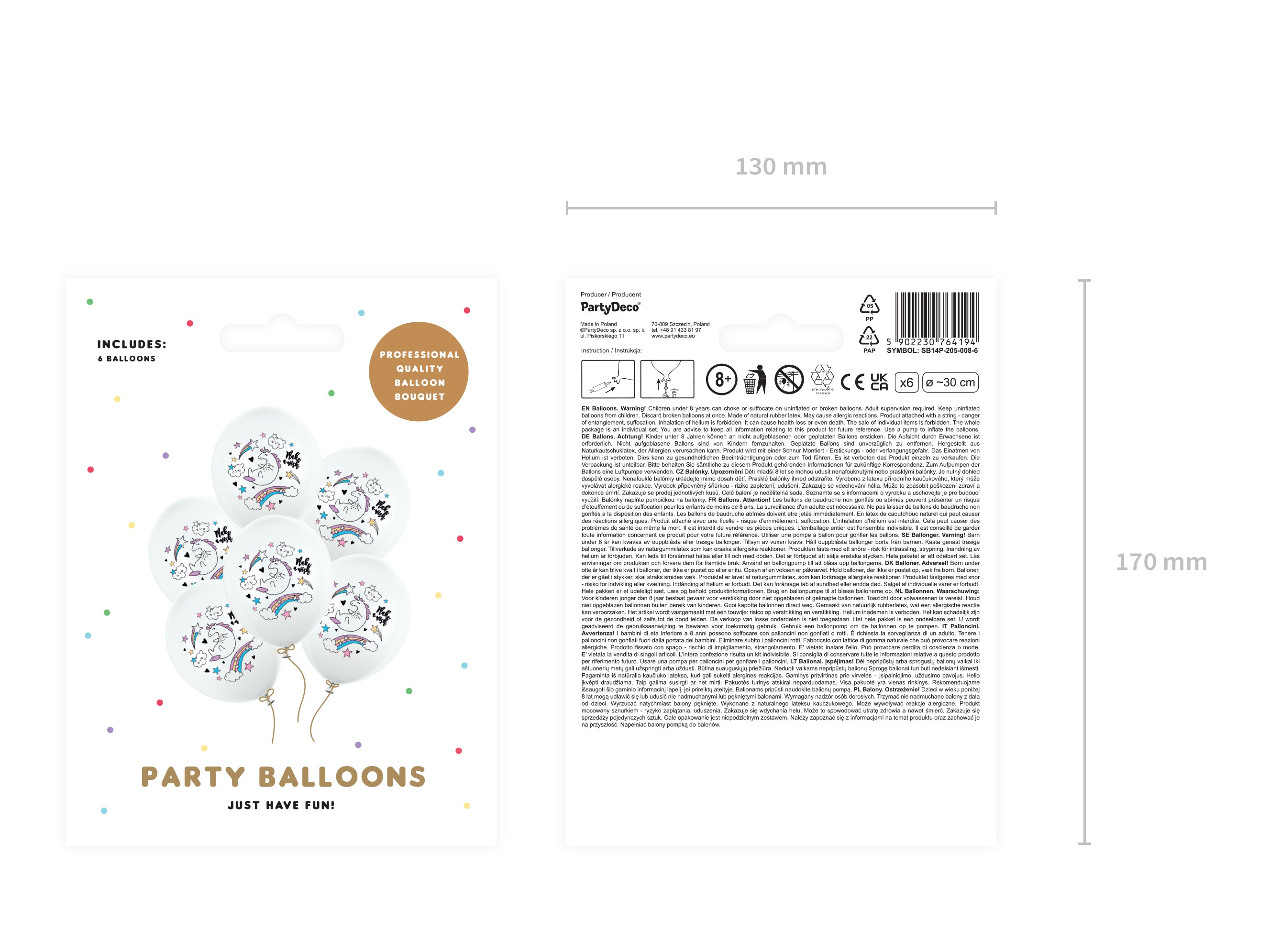 Setul unicorn contine 6 baloane albe cu print. Citește mai mult