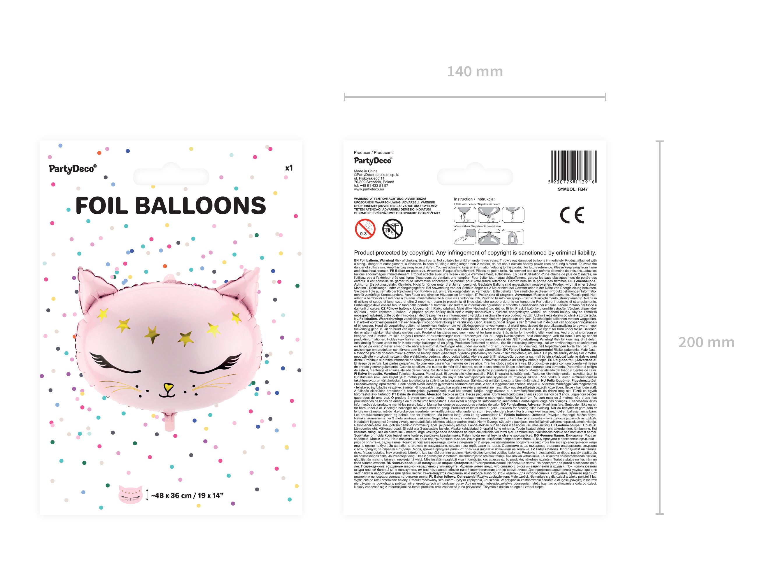Balon din folie in forma de cap de pisica. Marime inainte de umflare aprox. 1 48 x 36 cm (19... Citește mai mult