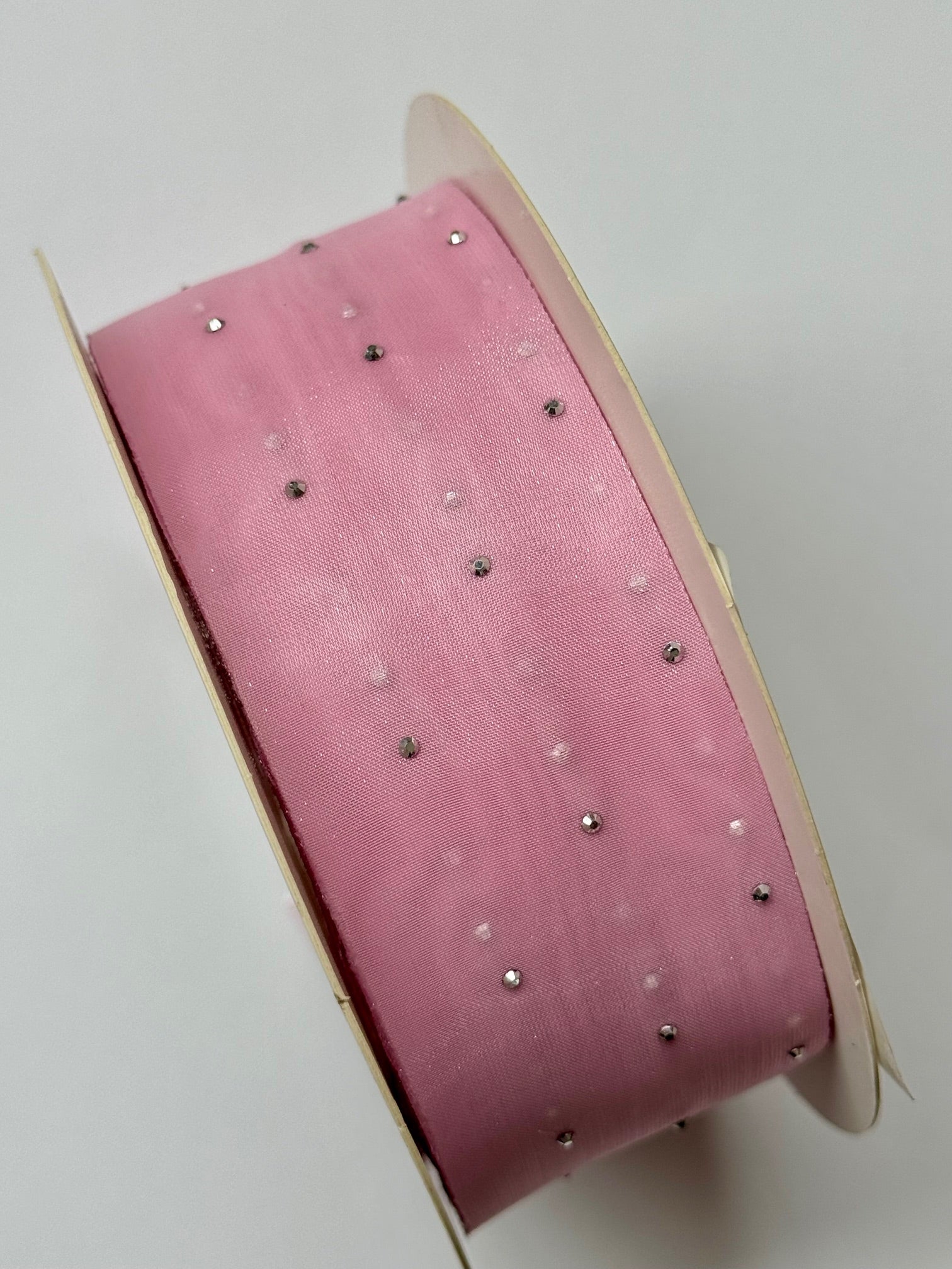 Panglica textil - organza 4cm cu paiete roz