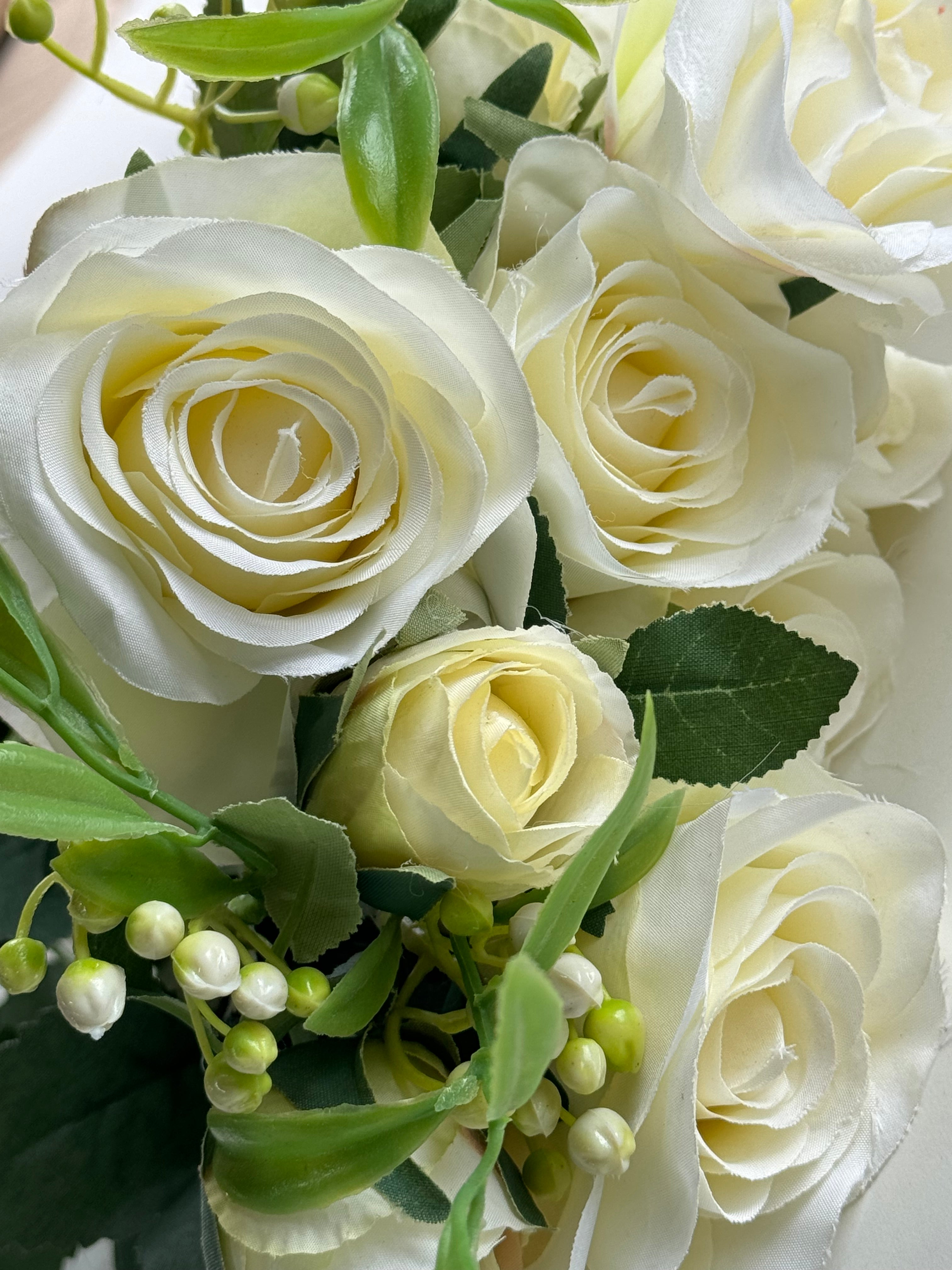 Trandafiri artificiali (10 flori) ivory cu verdeata